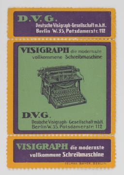 Reklamemarke/Werbemarke für Schreibmaschine Visigraph rechteckig, polychrom Text: D.V.G. Deutsche Visigraph Gesellschaft Berlin