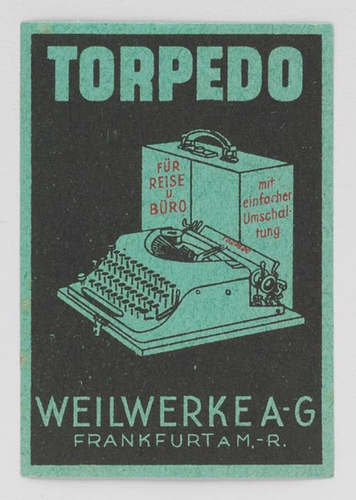 Siegelmarke für Schreibmaschine Torpedo rechteckig, polychrom, zwei Exemplare
