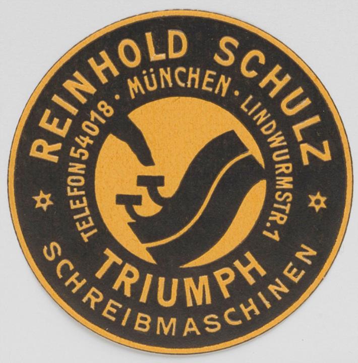 Siegelmarke für Schreibmaschinenhandlung Reinhold Schulz München, Lindwurmstr. 1 rund, monochrom