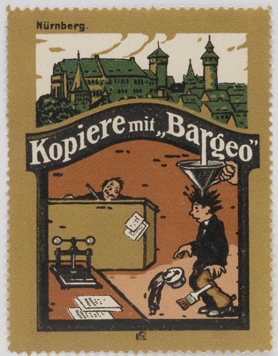 Reklamemarke/Werbemarke für Kohlepapier Bargeo rechteckig, polychrom