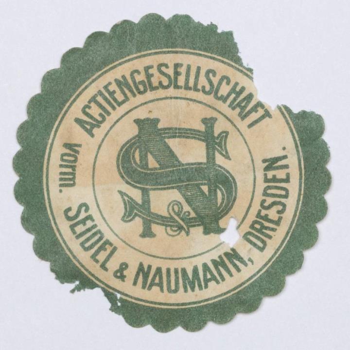 Siegelmarke für Schreibmaschinenhersteller Seidel & Naumann rund, monochrom