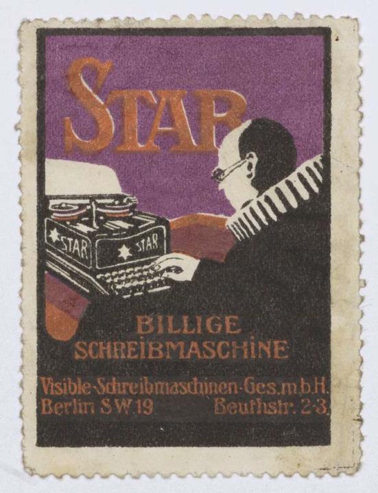 Reklamemarke/Werbemarke für Schreibmaschine Star; rechteckig, polychrom Text: Visible-Schreibmaschinen-Ges.m.b.H. Berlin