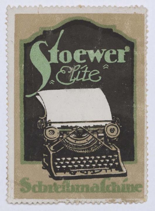 Reklamemarke/Werbemarke für Schreibmaschine Stoewer rechteckig, polychrom