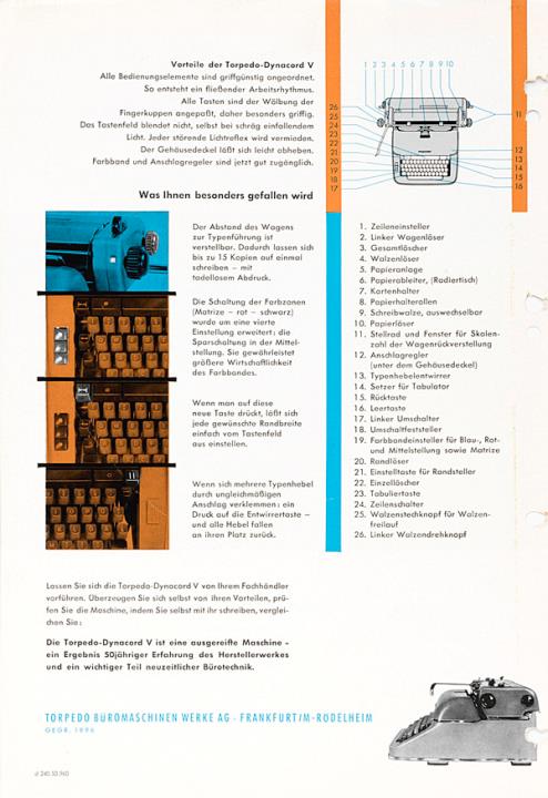Prospekt für Schreibmaschine Torpedo Dynacord V Nr. d240.50.960