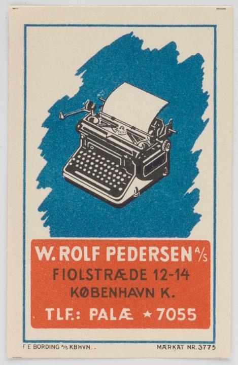 Siegelmarke für Schreibmaschinenhandlung W. Rolf Pedersen, Kopenhagen rechteckig, polychrom