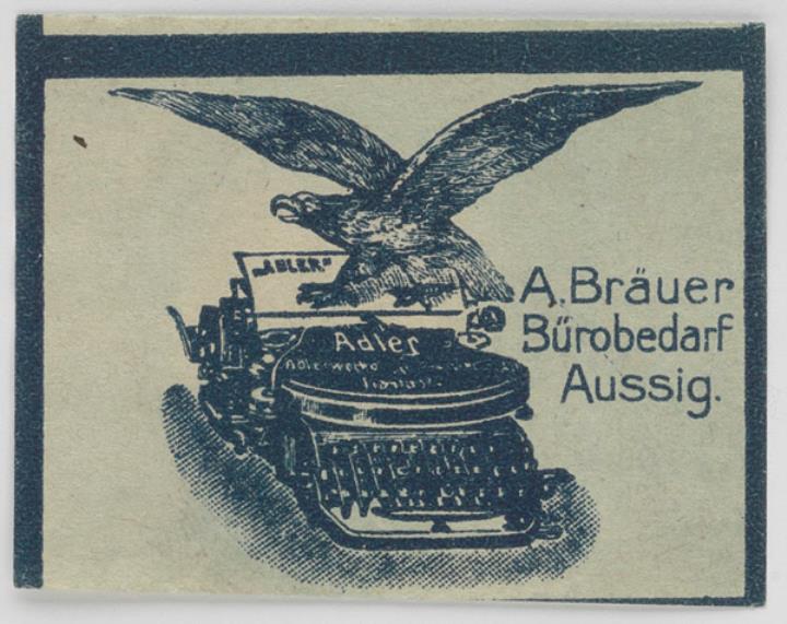 Siegelmarke für Schreibmaschinen- und Bürowarenhandlung A. Brauer rechteckig, monochrom