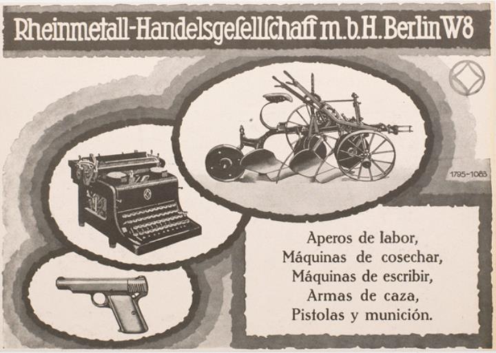 Aperos de labor [...] Máquinas de escribir [...] Pistolas y munición. Rheinmetall
