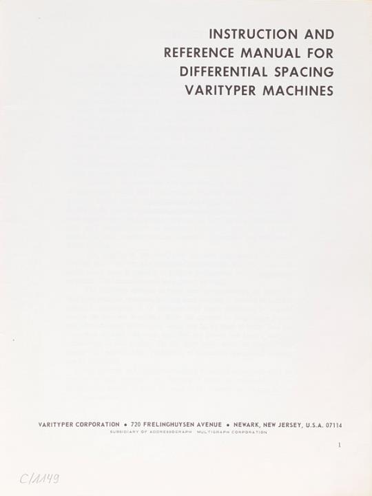 Bedienungsanleitung für Schreibmaschine Varityper Nr. 3200-Rev.A