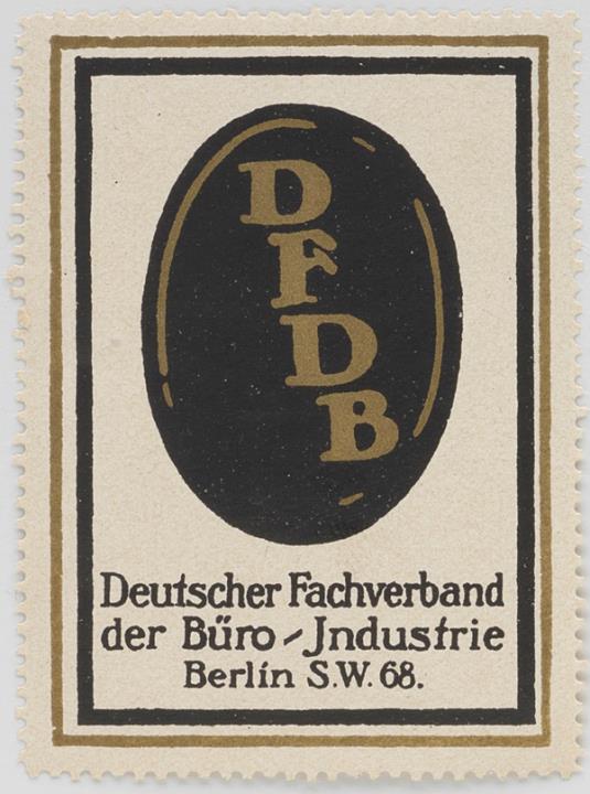 Reklamemarke/Werbemarke für Deutschen Fachverband der Büroindustrie Berlin S.W.68 rechteckig, polychrom