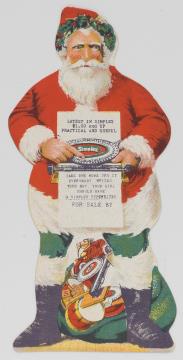Werbebild, konturgeschnitten Motiv: Weihnachtsmann mit Schreibmaschine Simplex Rückseite mit Werbetext