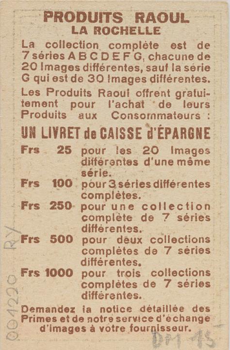 Reklamesammelbild (Produits Raoul); polychrom Serie Le Belles Inventions, Bild G 135 Rückseite: Werbetext