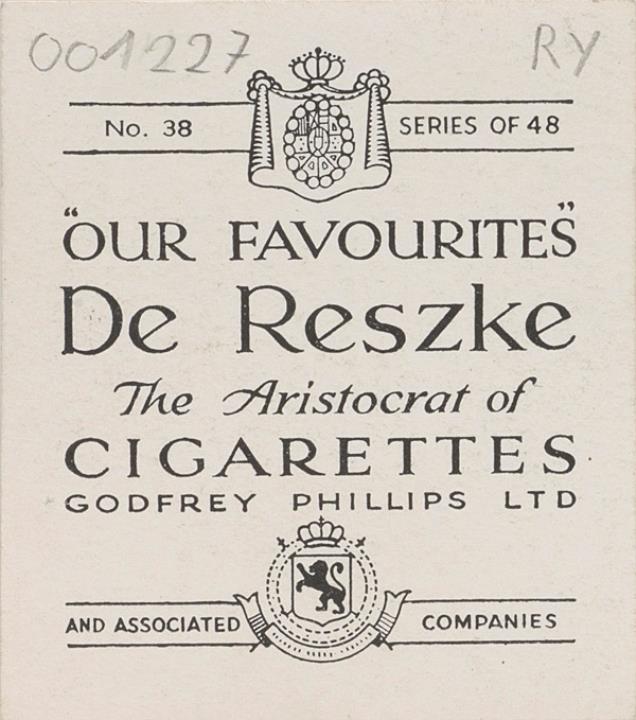 Reklamesammelbild (Zigaretten De Reszke), monochrom Bild 38 Rückseite: Werbetext