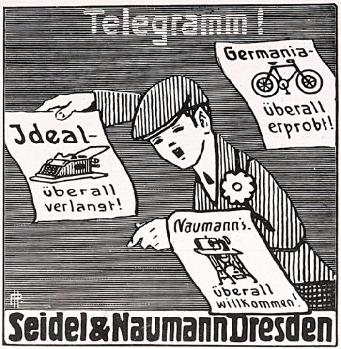 Werbeanzeige des Schreibmaschinenherstellers Seidel & Naumann monochrom