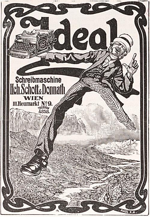 Werbeanzeige für Schreibmaschine Ideal monochrom