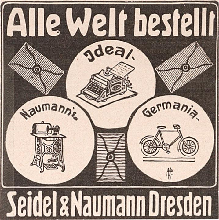Werbeanzeige des Schreibmaschinenherstellers Seidel & Naumann monochrom