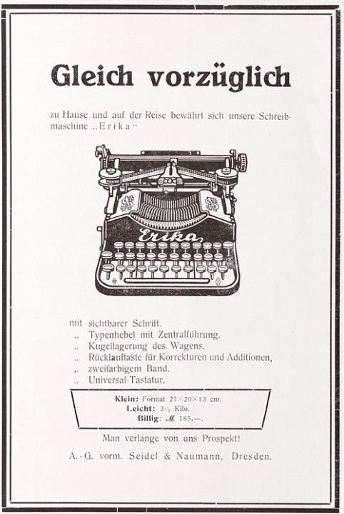 Werbeanzeige für Schreibmaschine Erika monochrom