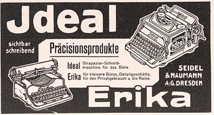 Werbeanzeige für Schreibmaschinen Ideal und Erika monochrom