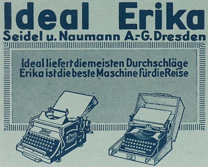 Werbeanzeige für Schreibmaschinen Ideal und Erika monochrom