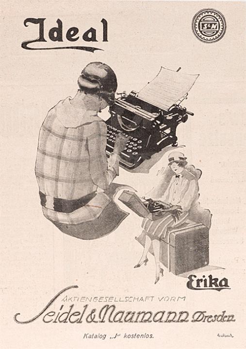 Werbeanzeige für Schreibmaschinen Ideal und Erika monochrom