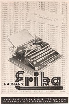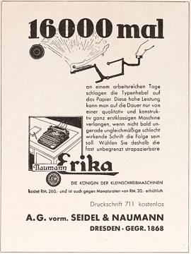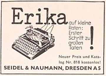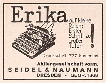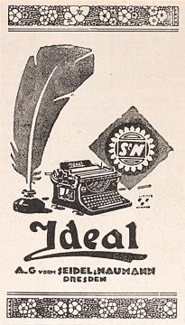 Werbeanzeige des Schreibmaschinenherstellers Seidel & Naumann monochrom