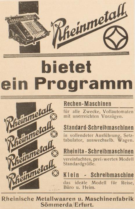 Werbeanzeige für Schreibmaschine Rheinmetall monochrom