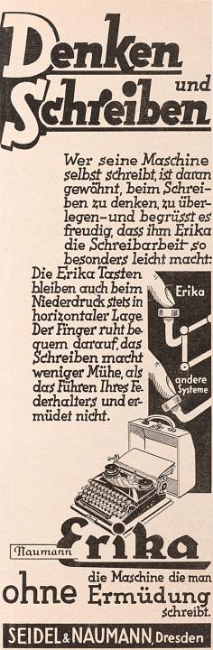 Werbeanzeige für Schreibmaschine Erika monochrom