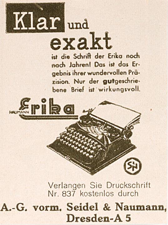 Werbeanzeige für Schreibmaschine Erika monochrom