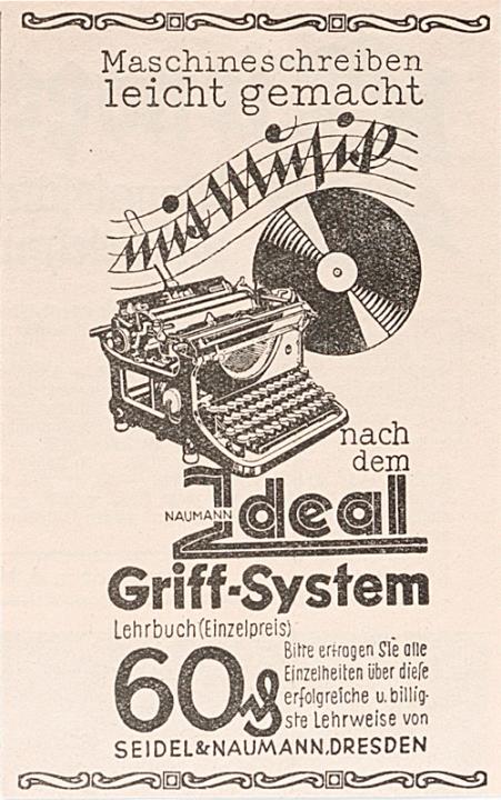 Werbeanzeige für Maschinenschreib-Lehrbuch Ideal monochrom