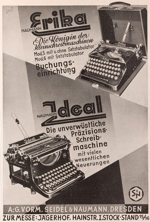 Werbeanzeige für Schreibmaschinen Erika und Ideal monochrom