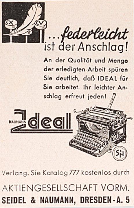 Werbeanzeige für Schreibmaschine Ideal monochrom