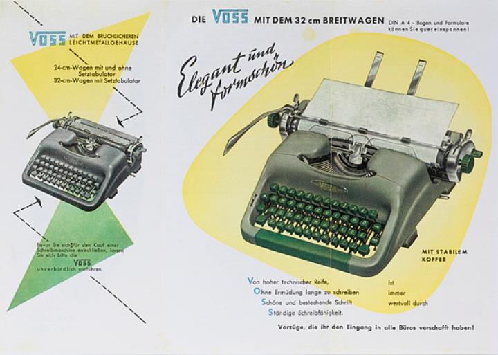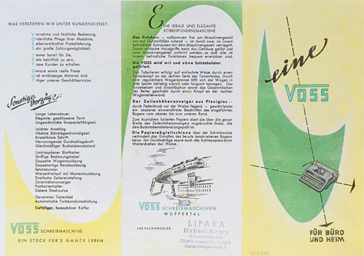 Faltprospekt für Schreibmaschine Voss Farbfotokopie