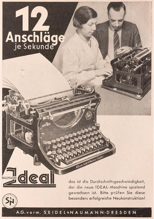 Werbeanzeige für Schreibmaschine Ideal monochrom