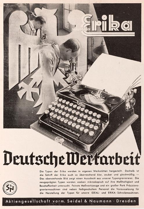Werbeanzeige für Schreibmaschine Erika monochrom