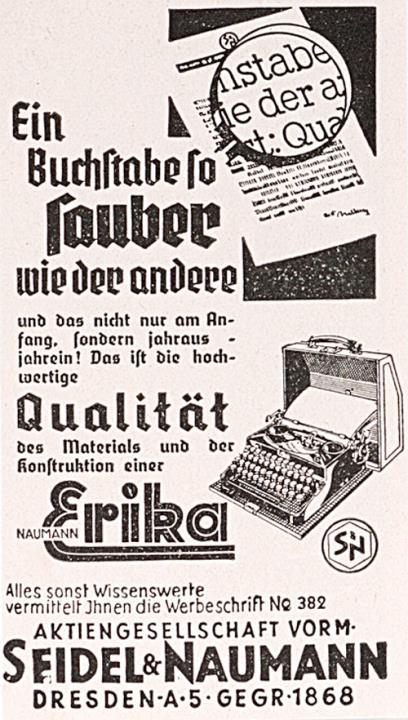 Werbeanzeige für Schreibmaschine Erika monochrom