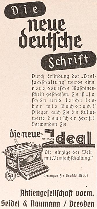 Werbeanzeige für Schreibmaschine Ideal monochrom