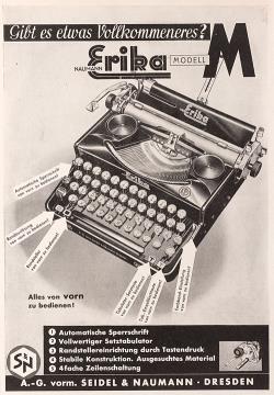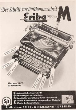 Werbeanzeige für Schreibmaschine Erika M monochrom
