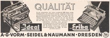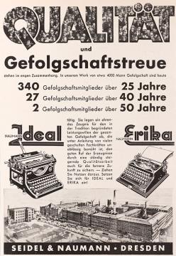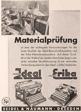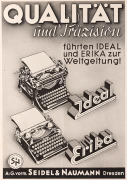 Werbeanzeige für Schreibmaschinen Erika und Ideal monochrom