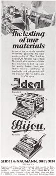 Werbeanzeige für Schreibmaschinen Bijou (Erika) und Ideal monochrom