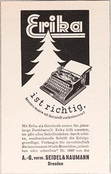 Werbeanzeige für Schreibmaschine Erika monochrom