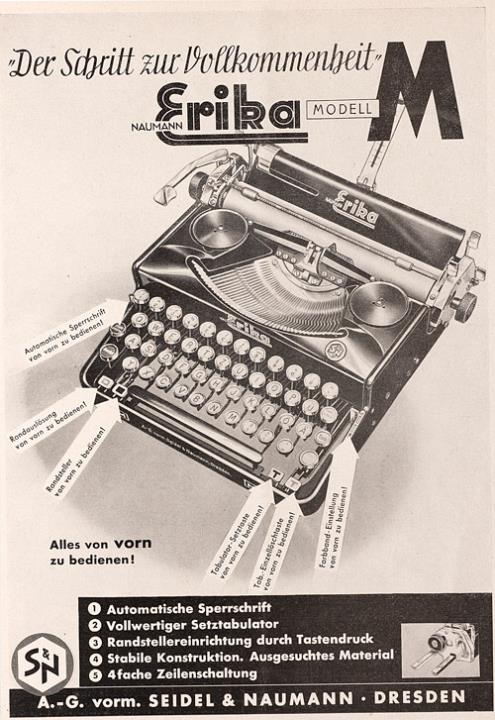 Werbeanzeige für Schreibmaschine Erika monochrom