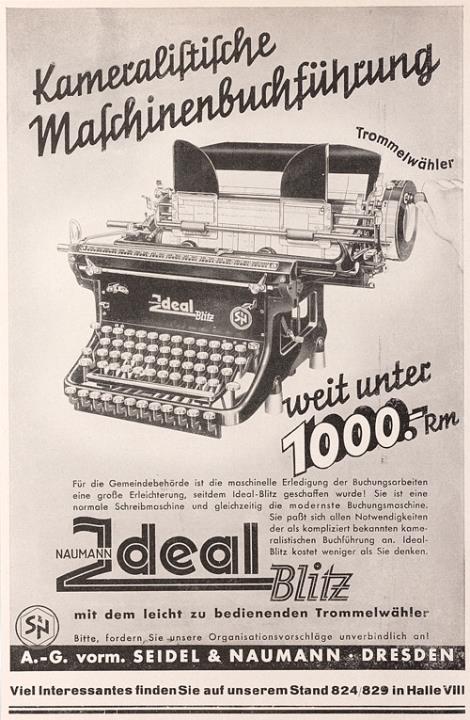 Werbeanzeige für Schreibmaschine Ideal Blitz monochrom