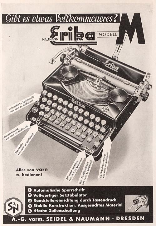 Werbeanzeige für Schreibmaschine Erika M monochrom