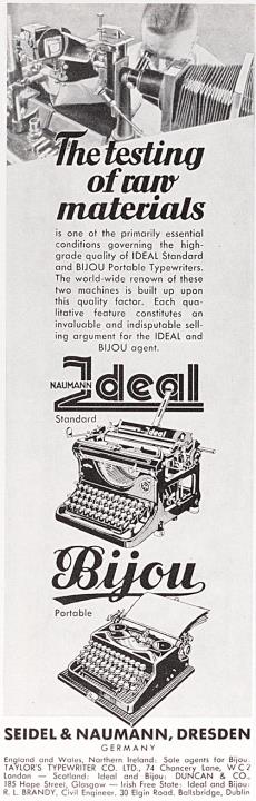 Werbeanzeige für Schreibmaschine Bijou (Erika) und Ideal monochrom