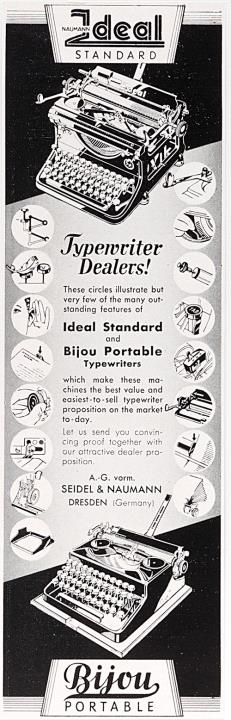 Typewriter Dealers! Ideal Standard and Bijou Portable Typewriters