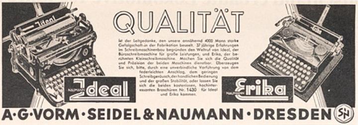 Werbeanzeige für Schreibmaschinen Erika und Ideal monochrom