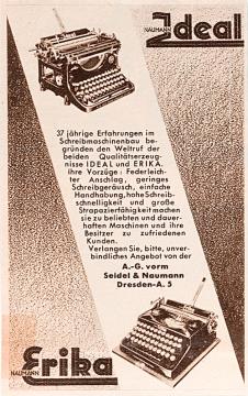 Werbeanzeige für Schreibmaschinen Erika und Ideal monochrom
