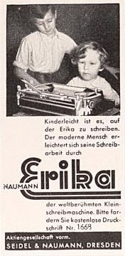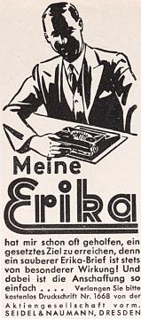 Werbeanzeige für Schreibmaschine Erika monochrom