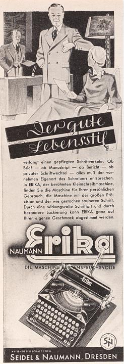 Werbeanzeige für Schreibmaschine Erika monochrom