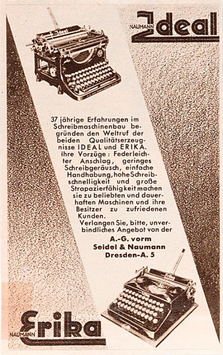 Werbeanzeige für Schreibmaschinen Erika und Ideal monochrom