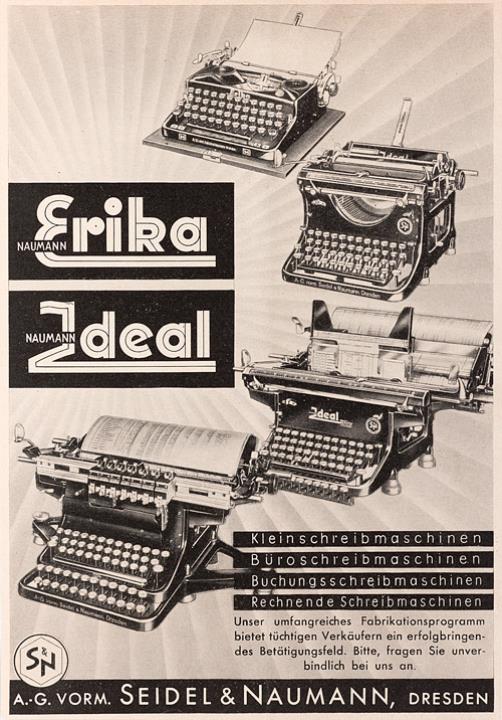 Werbeanzeige für Schreibmaschinen Erika und Ideal monochrom